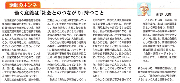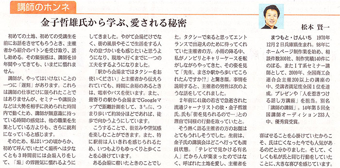 この講師オーディションは大変意義深いイベントだと思います。 - 「自分が話す立場になった時に参考になる事項がたくさんありました。