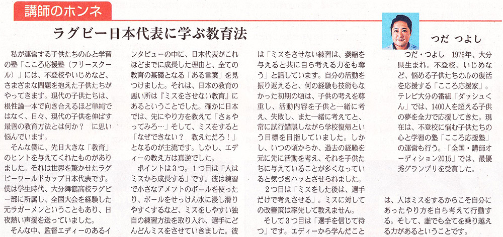 大谷先生の連載のコラムをインターネットで拝見して、すごく面白い先生がいらっしゃると思いました。調べてみたところ志縁塾が行っているとても興味深い全国・講師オーディションが開かれるということで、チャレンジしてみようと思いました。 講師オーディションに参加した後、講師の派遣会社に2社ほど登録をしました。1社からは実際に仕事をいただくことができました。 出ても何も起きないかもしれないけれど、出ることをきめたことは大きな一歩です。それに向けて動けたということも大きな糧になります。仮に本選に出場に出られる幸運に恵まれたのならばそれは大きな経験となり、今後の活動につながっていくはずです。