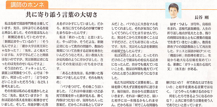 - 講師の皆様の「話す」ことに対する熱心な取り組みぶりが伺え、聞いている側の魂を揺さぶる、そんな思いをしました。とても勉強になりました。